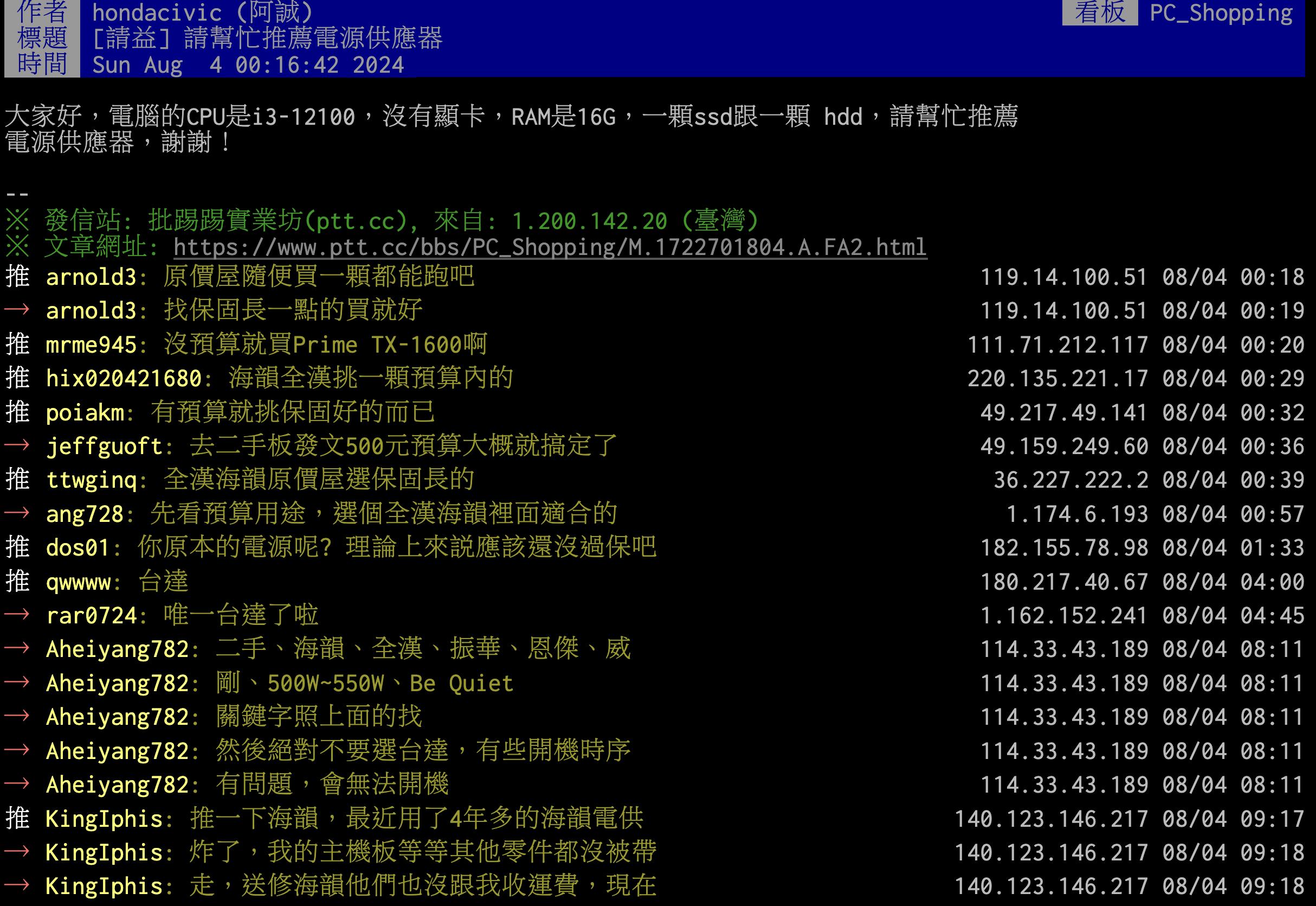 海韻電電源供應器,一直是玩家心中的品質保證。參考 PC 自組玩家聚集的 Ptt 電蝦版及遊戲社群平台巴哈姆特,可以觀察到海韻電 Seasonic PSU 是自組玩家的熱門選擇。