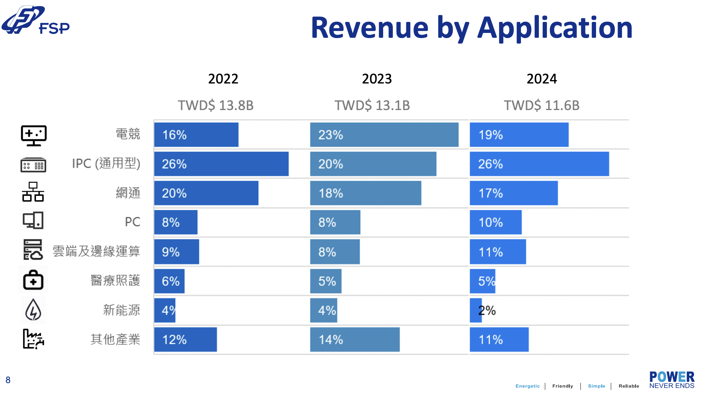 其餘如 群電(6412) 電腦電源產品佔營收僅約 40% ,安鈦克(6276) PSU 營收佔比僅約53%,且其高階電源供應器產品由海韻電代工。