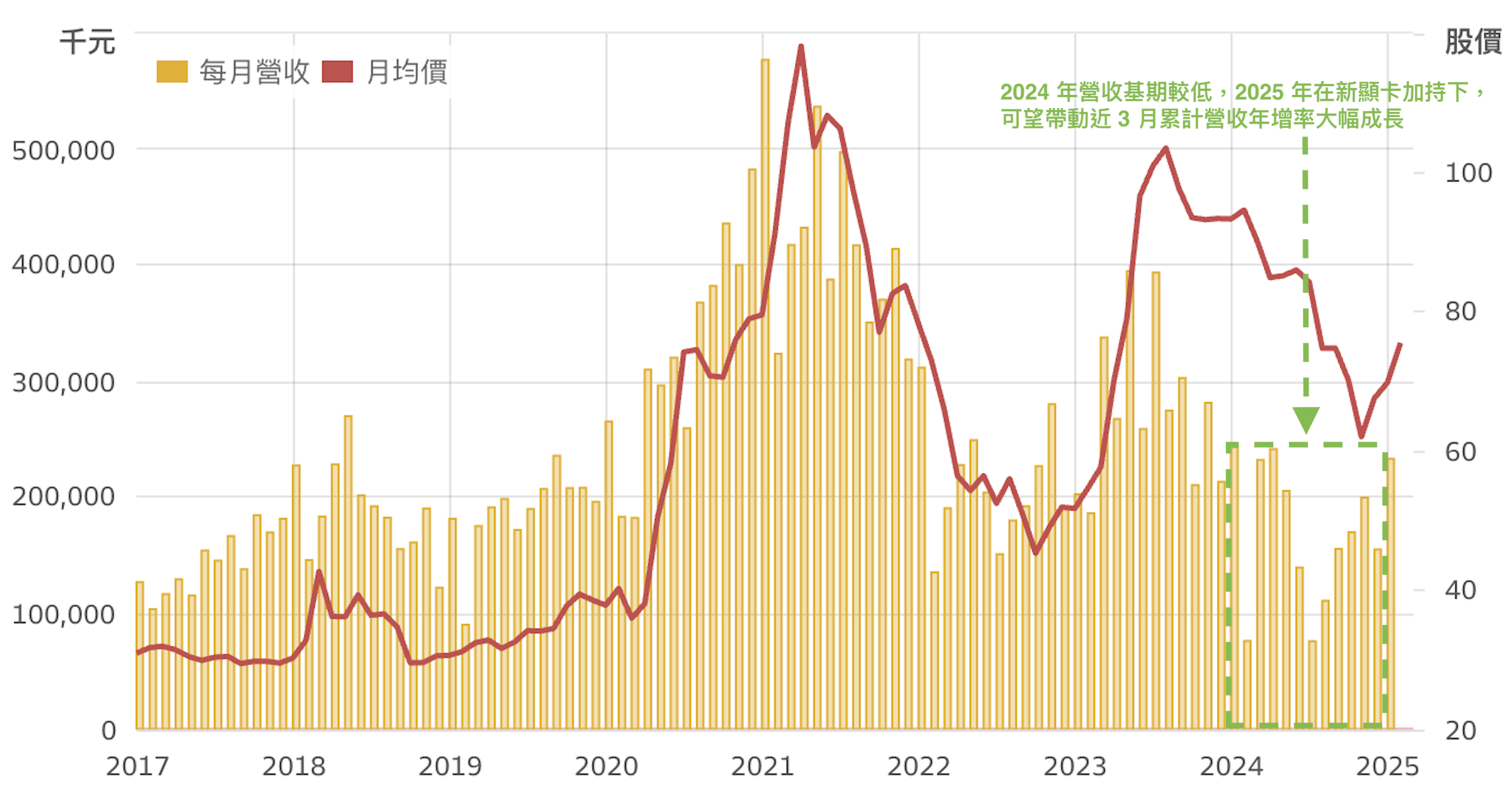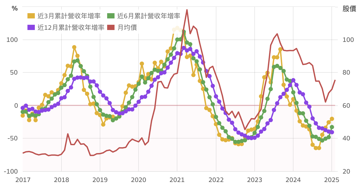 2025 年近 3 月累計營收年增率可望重回成長,帶動股價攀升