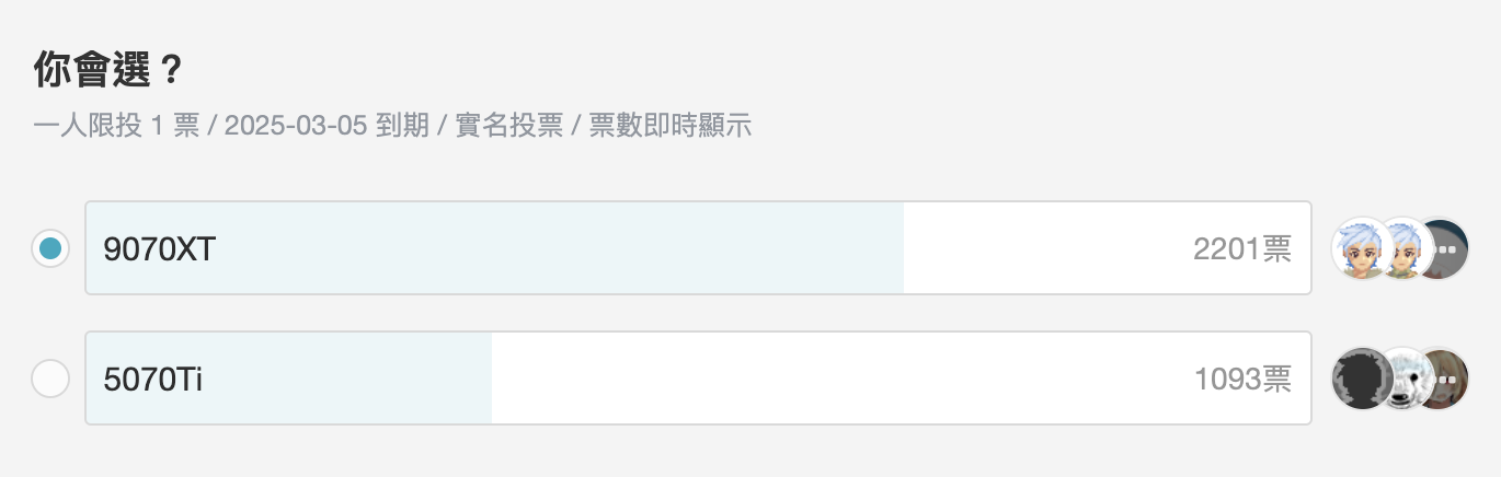 觀察一篇在知名遊戲論壇《巴哈姆特》的投票中,可以看到這次 AMD RX 9070 XT 系列,在 RTX 50 系列的災難後,成為玩家心中的希望。