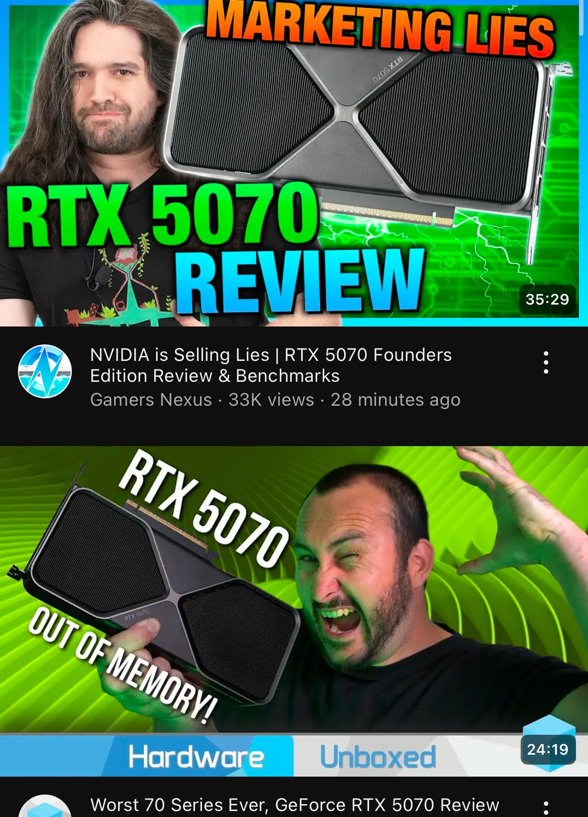 國外知名評測媒體也紛紛撻罰 RTX 5070 這張卡。