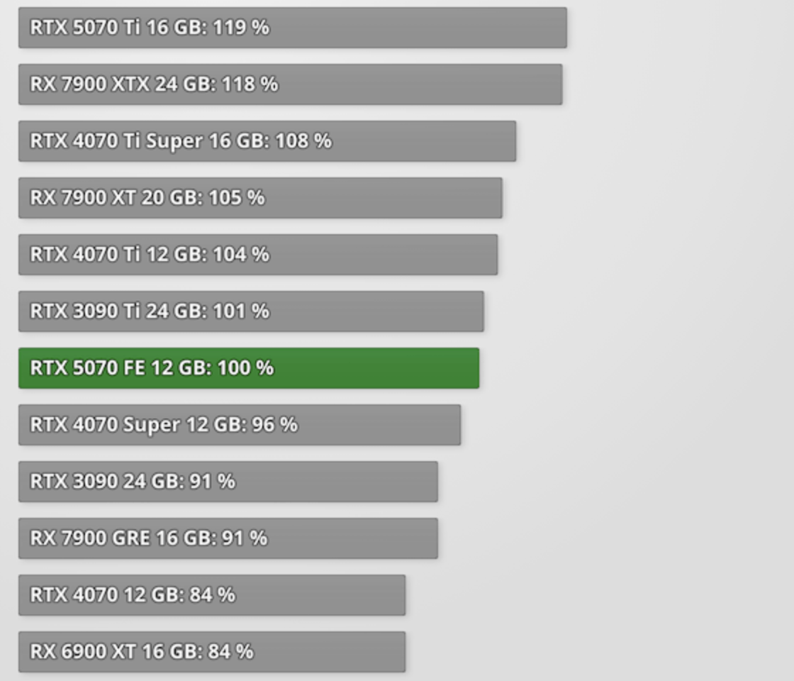 其中,被批評的最嚴重的,莫過於當初誇耀的 RTX 5070。實際經評測,RTX 5070 效能僅小幅勝於 RTX 4070 Super ,並介於及 RTX 4070 Ti 之間,根本連 RTX 4080 都沒碰到,更別提 RTX 4090。