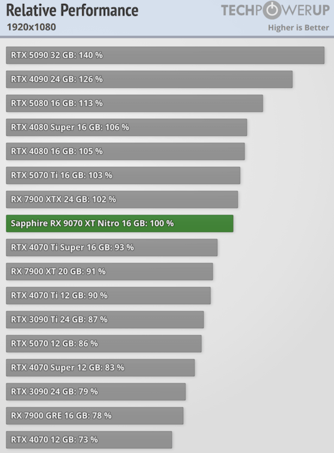 RX 9070 XT 效能小輸 RTX 5070 Ti ,但價格便宜 20%